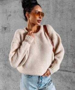 Beżowy Sweter Damski