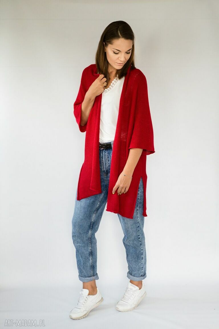 czerwony kardigan